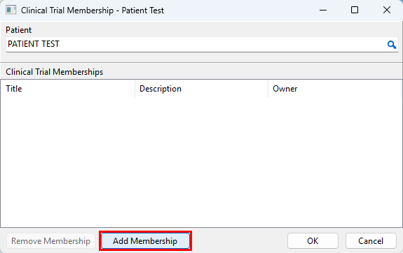 - Follow steps 1-3 of selecting a patient, then click Add Membership.