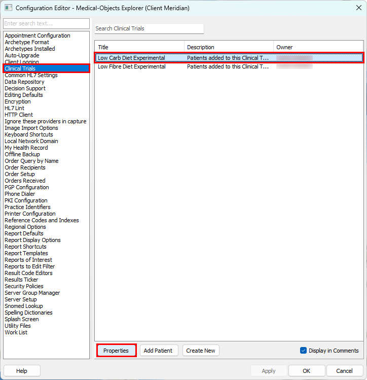 This guide provides a brief overview on how to register and deregister a patient from a Clinical Trial from within the Medical-Objects Explorer (Meridian).