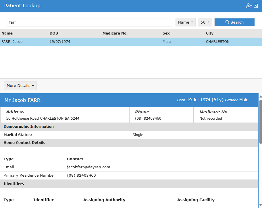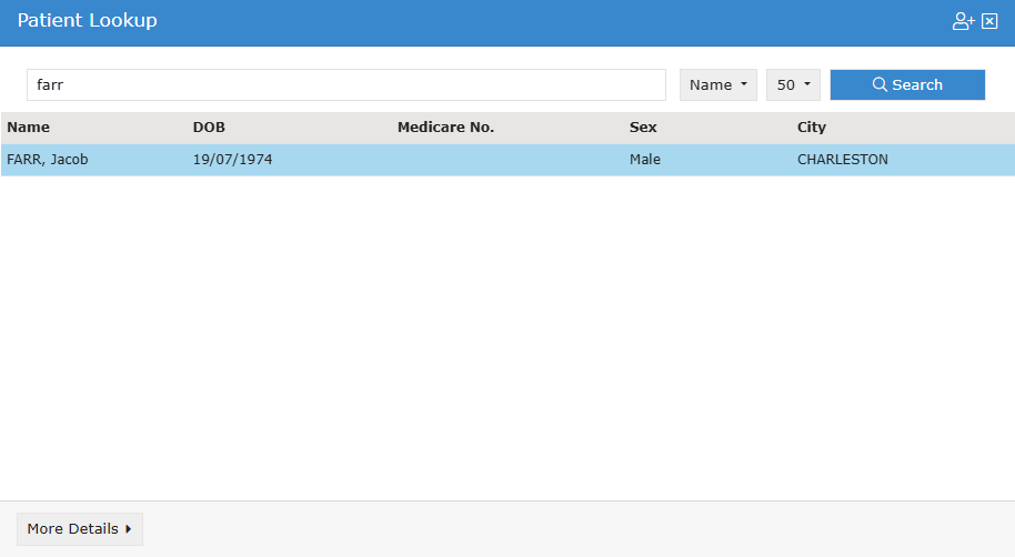 ) of the patient lookup window, will show the current highlighted patients additional information. This is useful if your search results have multiple patients with the same name.
