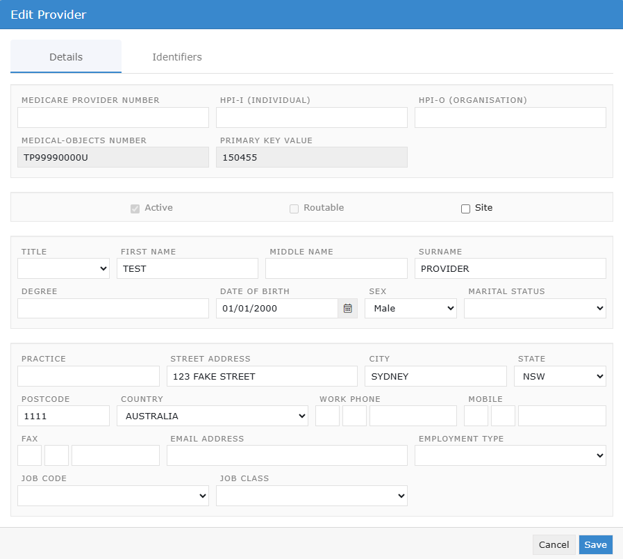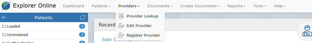 You may need to edit an existing provider record or add a new one for a provider not on the Medical-Objects network. Editing or creating records in Explorer Online will only make changes to your server's provider directory.
