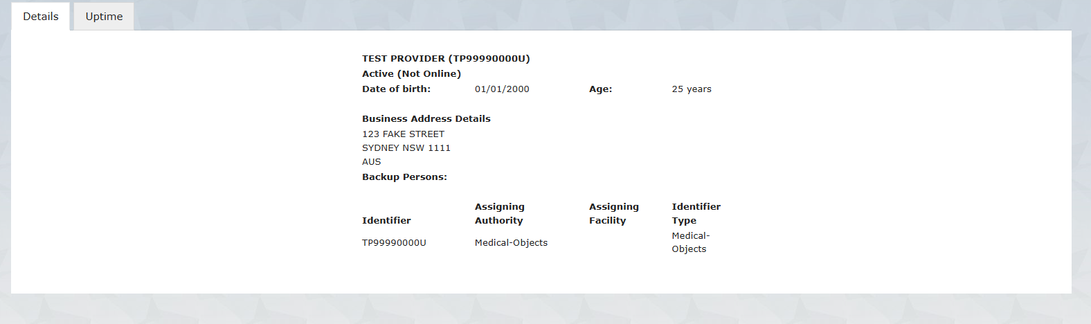 - You will be taken to a new screen which shows you all the details of the newly created provider.