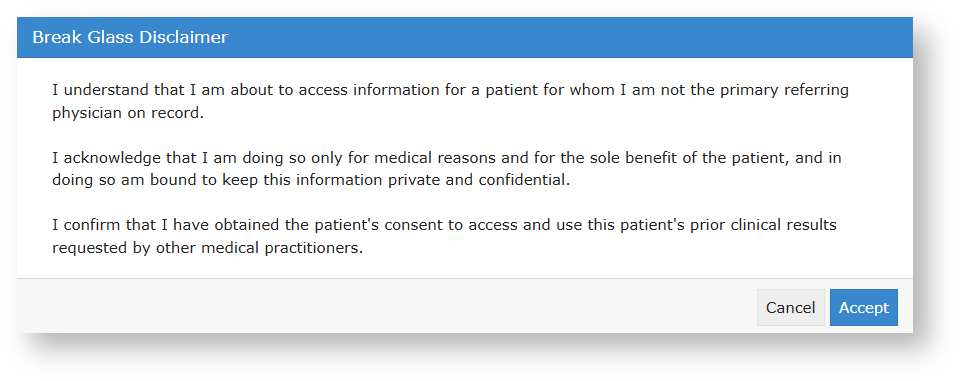 Break Glass allows you to access a patient and their results on the same system even if you are not the primary referring physician on record.