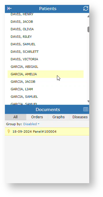 PatientsThe Patients section of the Sidebar consists of individual folders which contains patient documents. The folders will list each unique patient that has a document for that folder. The count to the right is the amount of patients in the folder and not the amount of combined documents. Hovering over a folder will reveal a grid icon ( To refresh the contents of the folders simply click the refresh button (