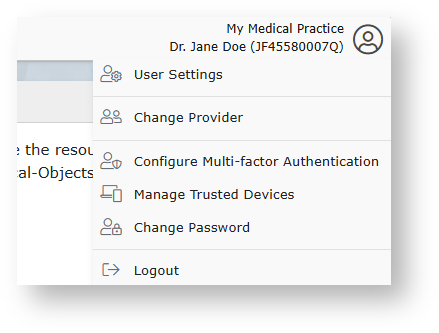 Once logged in you can Logout again or Change Provider by simply clicking on the User Menu in the top right hand corner of the screen.