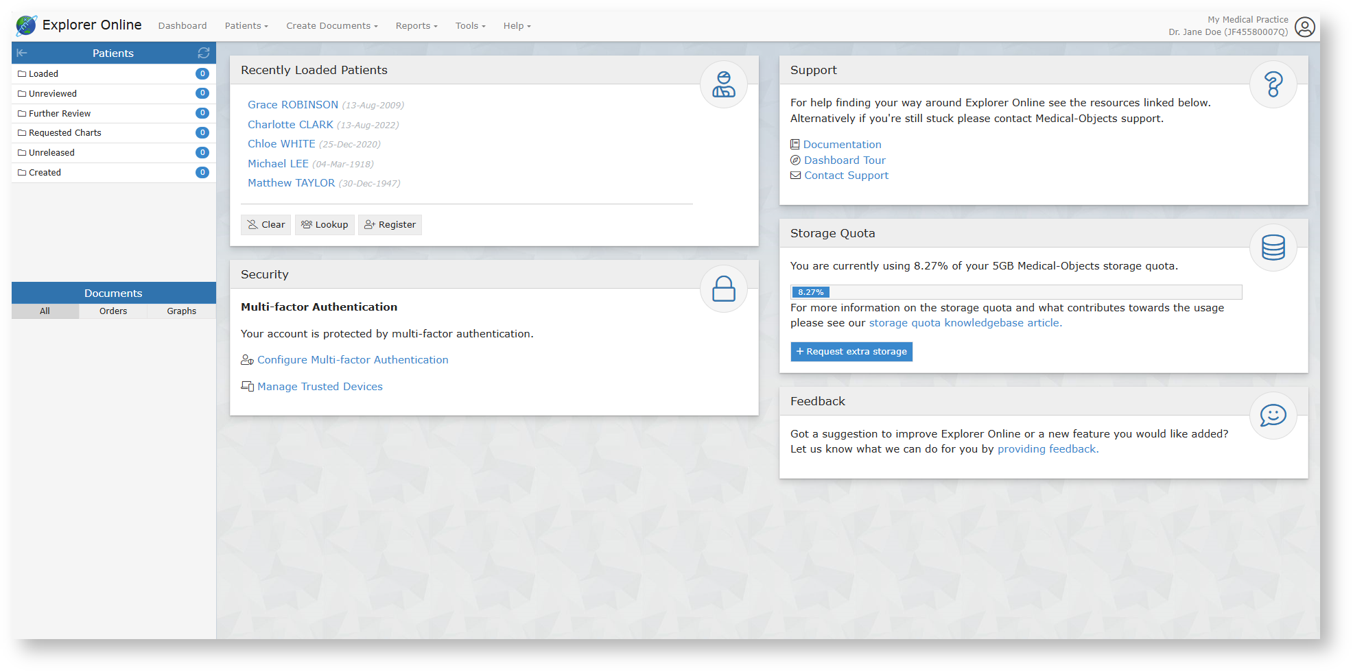 Medical-Objects Explorer Online is a web-based solution that allows you to send and receive patient documents from your own personal web browser on a tablet, desktop or laptop device.