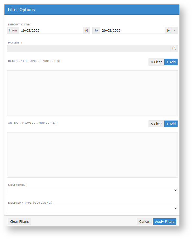 Most of filling out the document information is done automatically. If you have a patient selected in the Patients Sidebar then the Patient Details will already be filled out. If not, then you can click the Find button in the Patient Details section and find the patient details you need. You can also Add a patient on this screen, if the patient whose document you want to send isn't in the system yet.