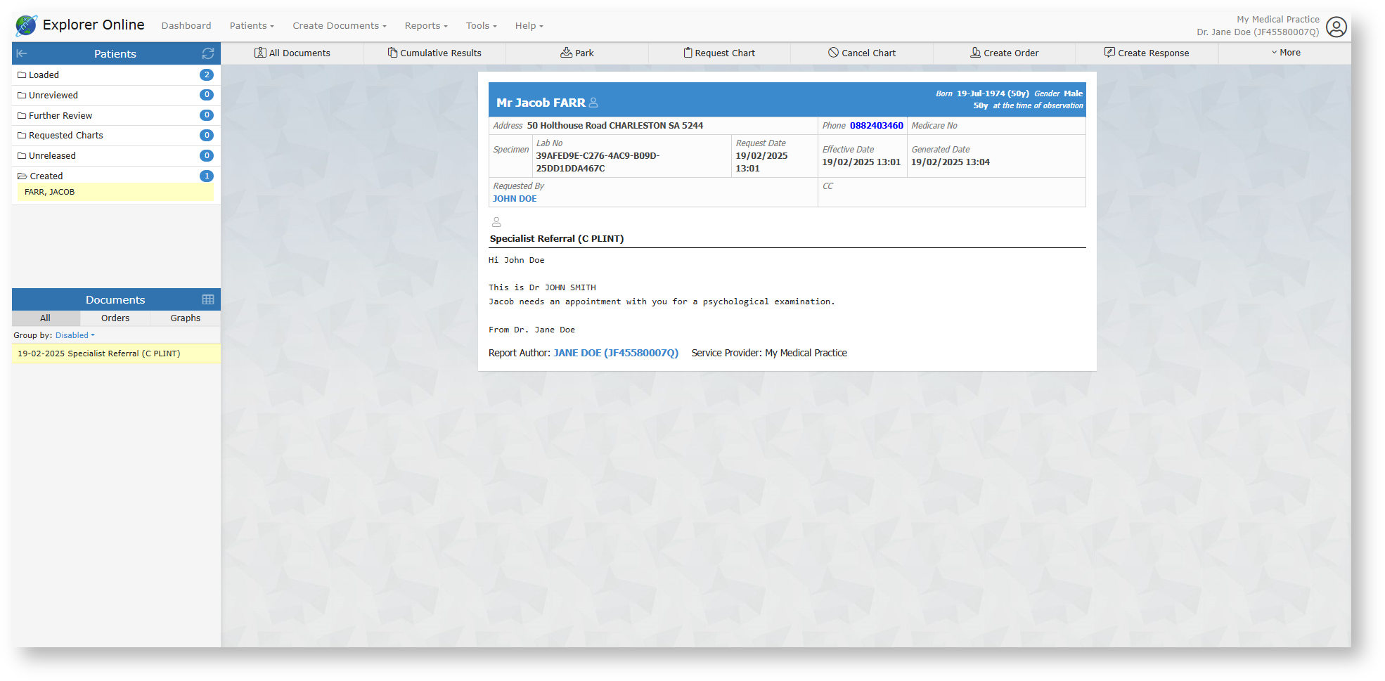 Any user in your practice’s Explorer Online software, who has the granted permissions to view results, can access documents in this folder. For more information on setting user permissions, see our Explorer Online Admin Guide or please contact the Helpdesk on (07) 5456 6000.