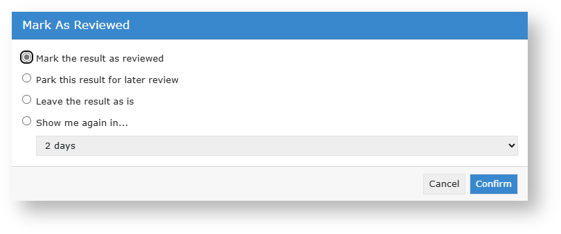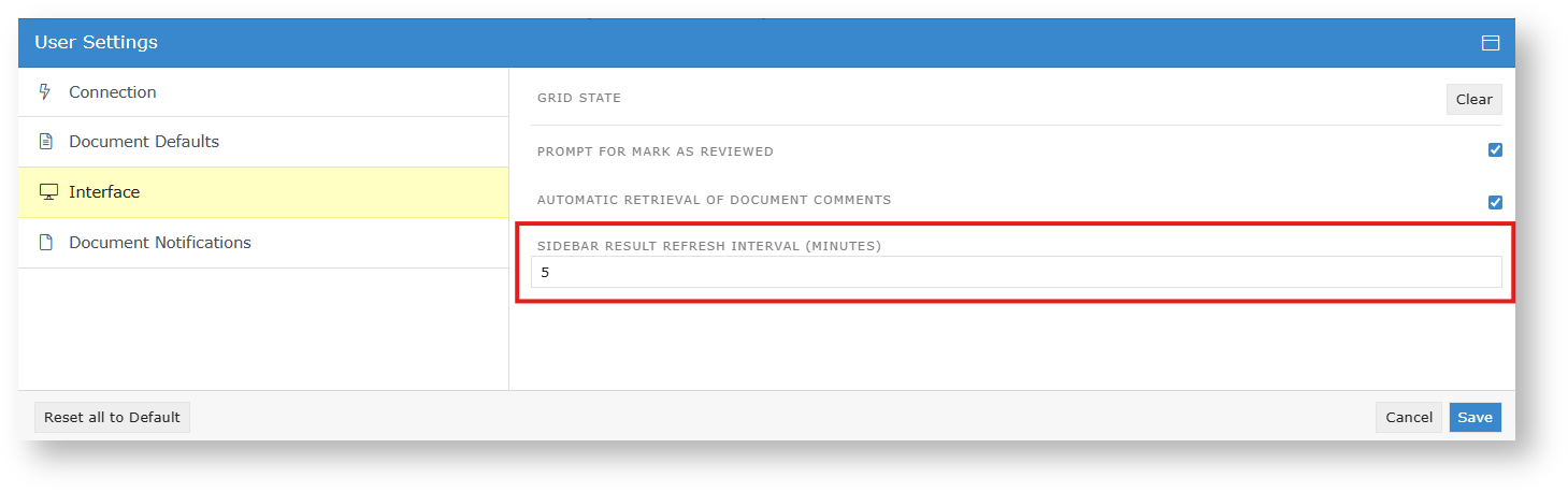 Automatic Loading of new unreviewed resultsTo ensure you are always up to date with the latest unreviewed results, Explorer Online will continuously poll for new results (every 5 minutes by default). This setting can be changed be changed by: