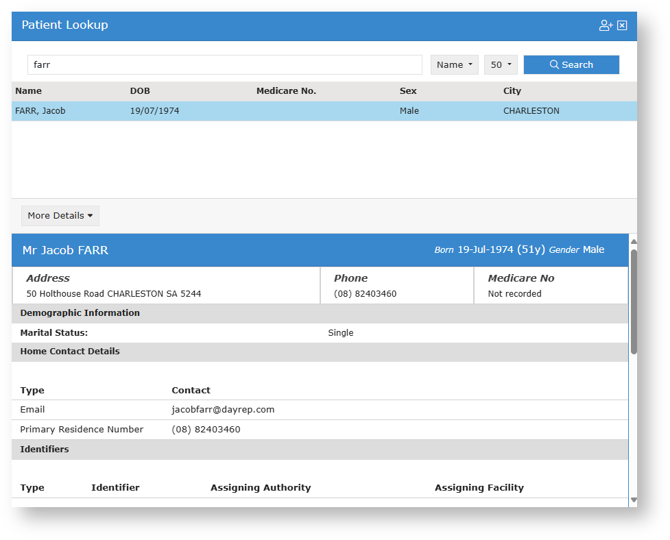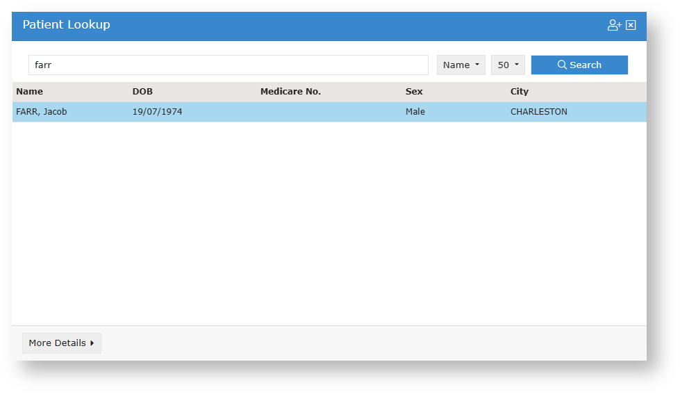 Image Added) of the patient lookup window, will show the current highlighted patients additional information. This is useful if your search results have multiple patients with the same name.