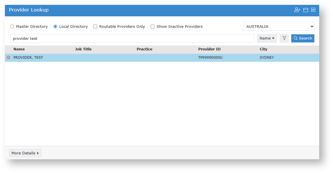 - You will be prompted with the provider lookup window. Search for the provider you wish to edit. The More Details button (