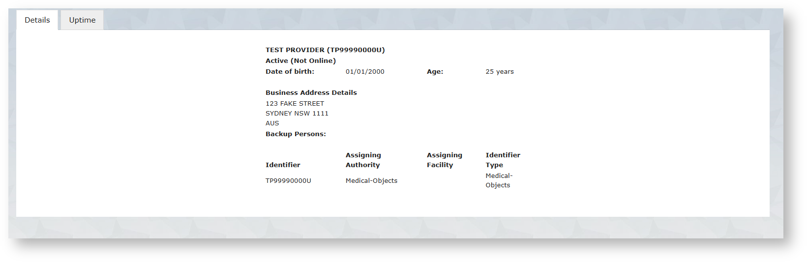 - You will be taken to a new screen which shows you all the details of the newly created provider.